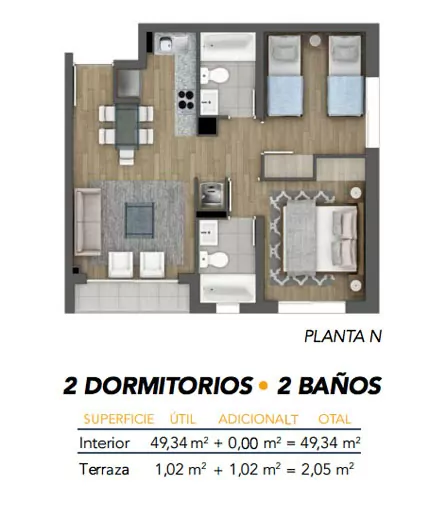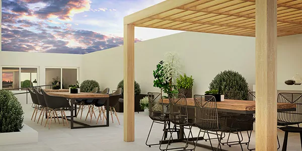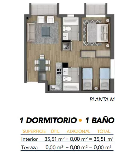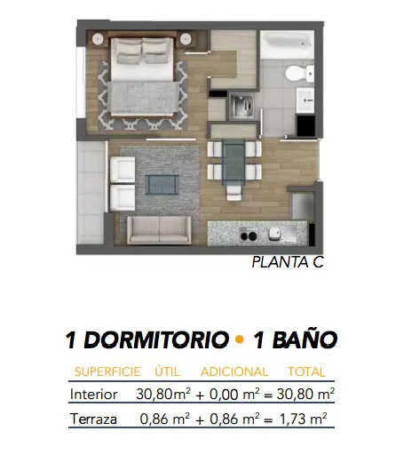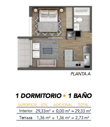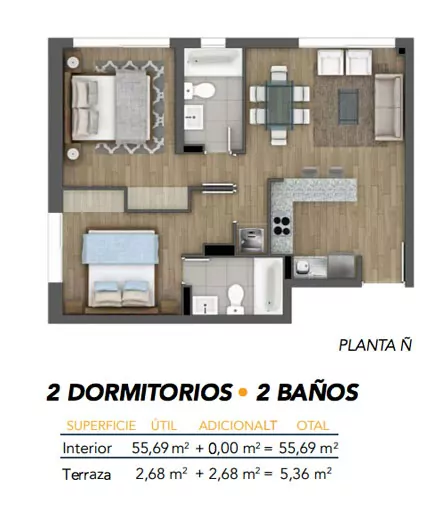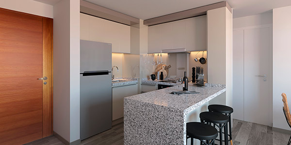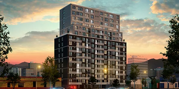 Un edificio de 155 departamentos de 1 y 2 dormitorios.